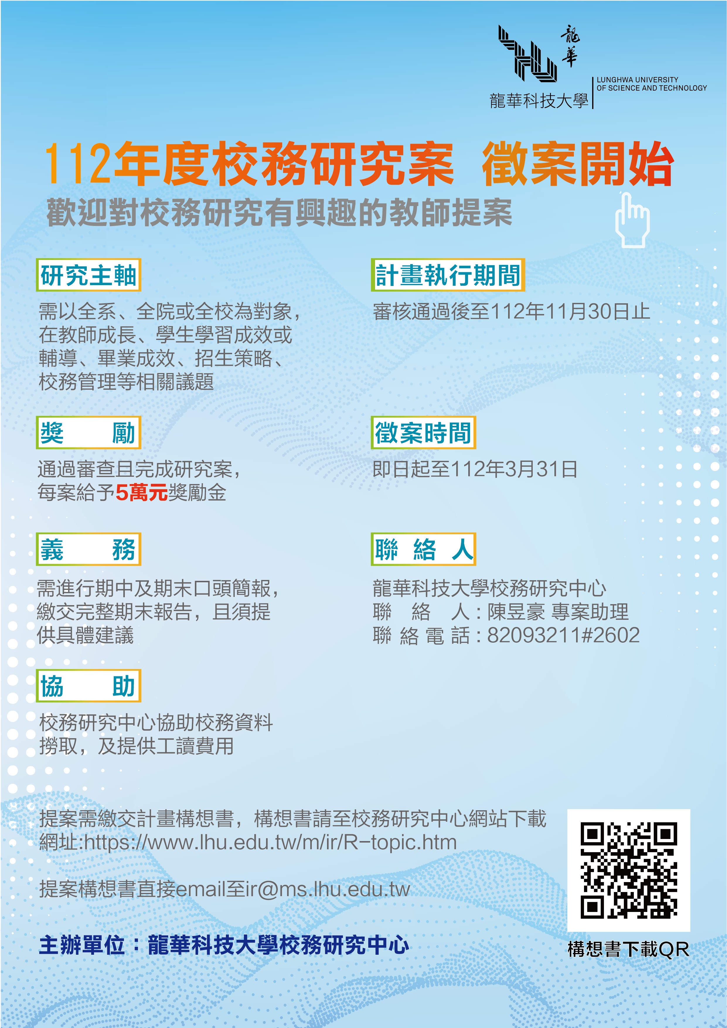歡迎對校務研究有興趣的專任教師或專案教師提案